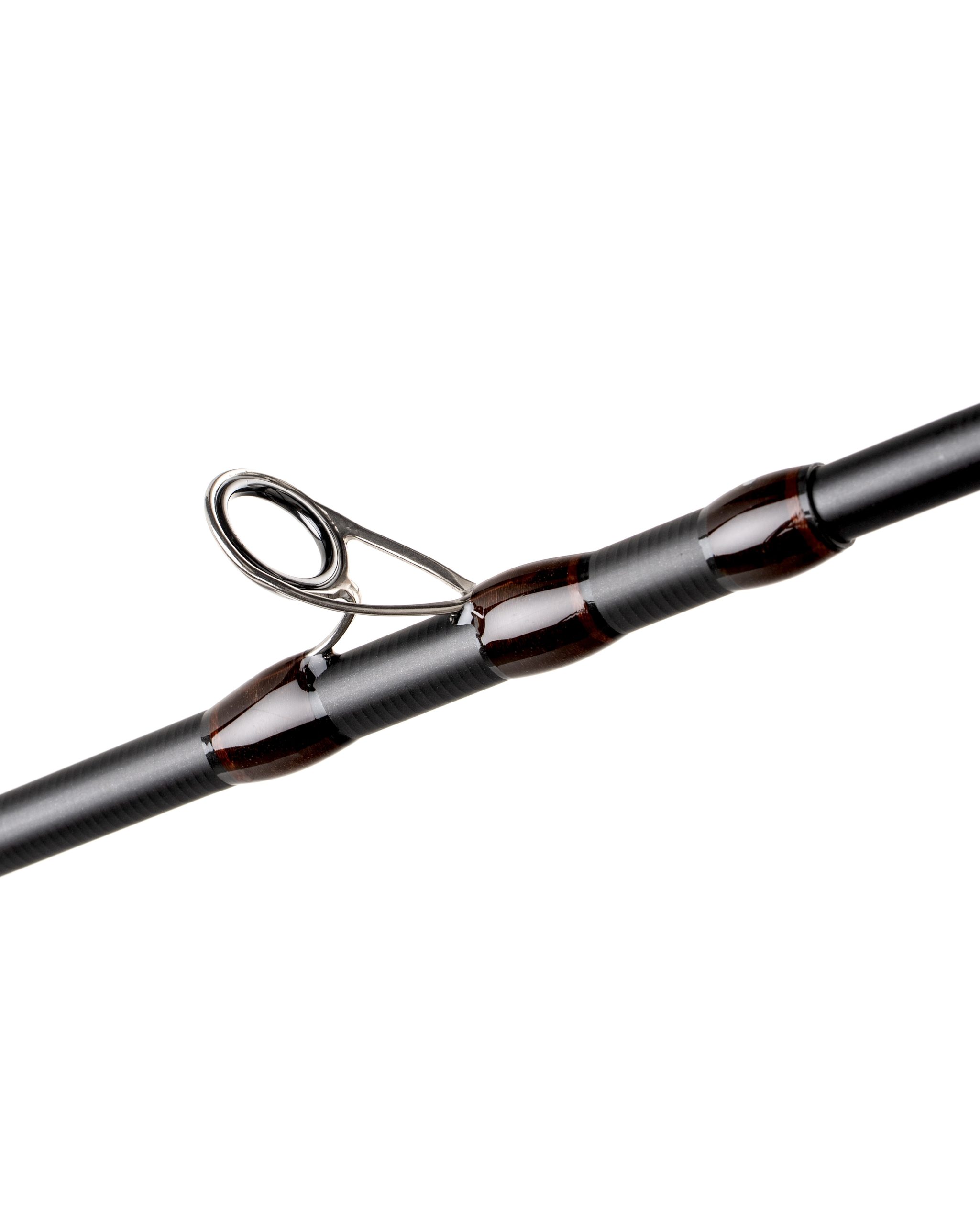 - Custom-designed reel seats featuring a hard-anodized, highly scratch-resistant semi-matte finish with copper trim details.